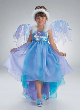 Would make a precious ice princess!Costume Includes: Dress with detachable overskirt and matching wings.Available size: