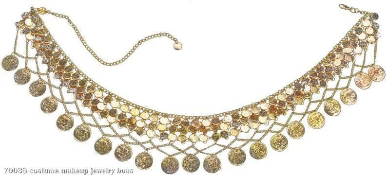 Add some extra glitz to your princess, genie or gypsy costume with this dazzling accessory. Includes one golden chain belt with pretty coin details.