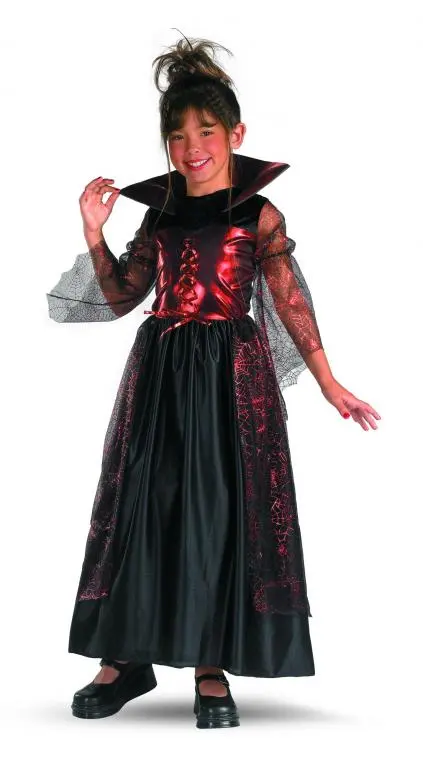 Costume Includes: Dress with standup collar and sheer web fabric detail.