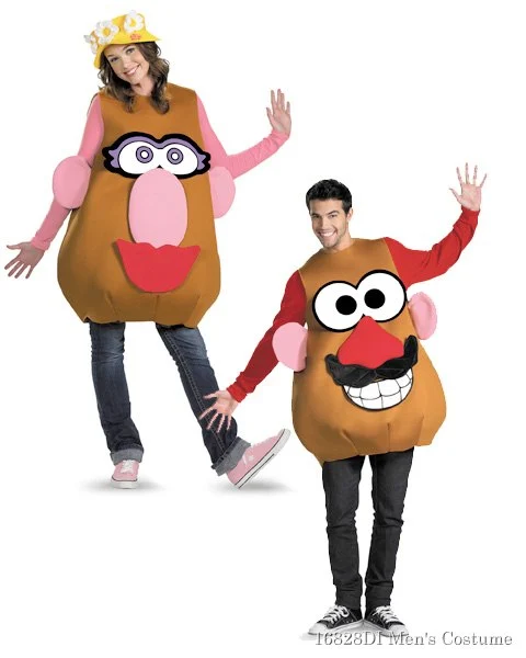 Mr. and Mrs. Potato Head is the perfect couple Halloween costume set. The Adult Mister and Mrs. Potato Head Costume is an interchangeable costume set with transposable face pieces, just like the classic toys! The Mr. Potato Head costumes come with a three-dimensional foam potato tunic with a set of detachable male eyes, nose, moustache and mouth. The Mrs. Potato Head costume comes with a set of detachable female eyes, nose, nose lips and hat. Everyone will have a great time at the Halloween party switching the different detachable parts around! Pants not included * Features foam overlay with set of detachable male eyes, nose, moustache, mouth and set of detachable female eyes, nose, lips and hat. Pants and shirt not included. * This is an officially licensed costume.