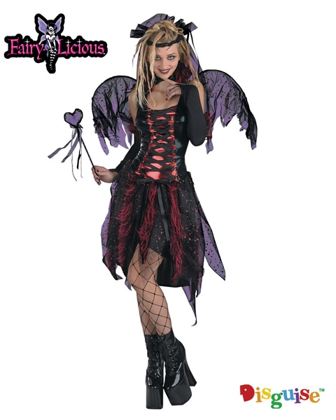 Fairies were once sweet and delicate. Wee little creatures who would hide in the gardens, playing secretly with children in the daylight. Some say they stole children to live with them in their fairy world. Many cultures have their stories of the fairy folk…but now someone, or something, is stealing the fairy folk themselves. With this costume, you can create some new stories. What if when vampires began to rule the nights and all wee fairies who were late getting home were never seen again. Until now. Now you can reveal yourself as the first ever Vampire Fairy in this dark, lacy, richly decorated costume which includes a lace up front dress with wings. It is complimented with a choker and glovettes. Is she good or is she bad? Party goers won’t know whether to run and hide, or stay and play but one thing’s for sure, there’s never been a sexier fairy until now!