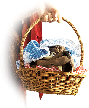 Perfect for Little Red Riding Hood!Real wicker basket with a latex wolf’s head inside. From our Unhappily Everafter Series.